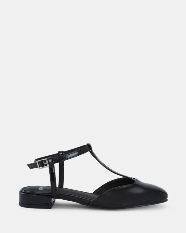 The classic ballet flats get an edgy upgrade with CASERTA flats. A patent finish upper, topped off with a T-strap attached to an ankle strap, adds a cute dimension to the classic design. Set on low-block heels, pick this pair up for a refreshing take on the ballerina flats.