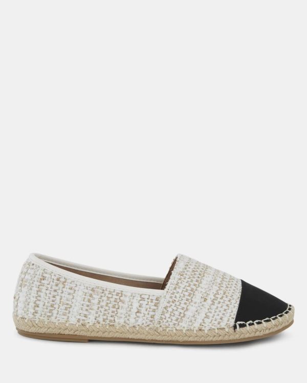 Our EMARA espadrille is the timeless slip-on pair your closet needs. Made from tweed, it features a beautiful contrasting closed-toe design and a soft, collapsible back panel that allows you to slip on and go easily. A perfect beach day shoe!