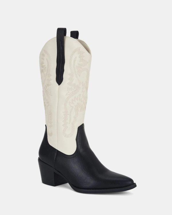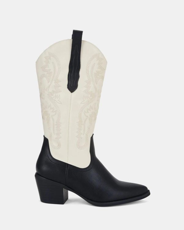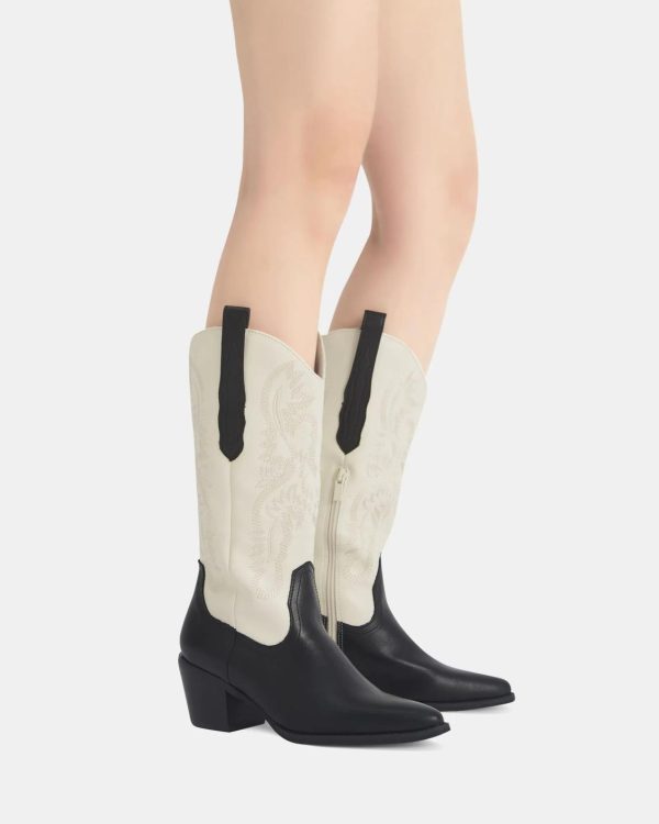 Are you ready to go HOWDY?! The cowboy booties of your dreams are here, ladies! Coming to you in black, cream and tan colours, these western style boots are an absolute show-stealer. With intricate embroidery stitching and cowboy style heel, these knee boots with cuban heels are made to uplift your flowy wrap dress or skirt. So, slip into these gamechangers and get the Western-theme party started!