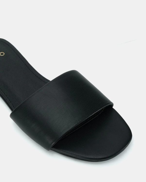 Beat the heat while looking utterly chic with SADELLA slides. Featuring a classic open-toed silhouette, these slip-on slides are ideal for days spent in the sun, on the beach or even just casual strolls in the city. What sets them apart from your regular slides are the satin or raffia top straps with smooth leather-look upper – an eye-catching element to these shoes.