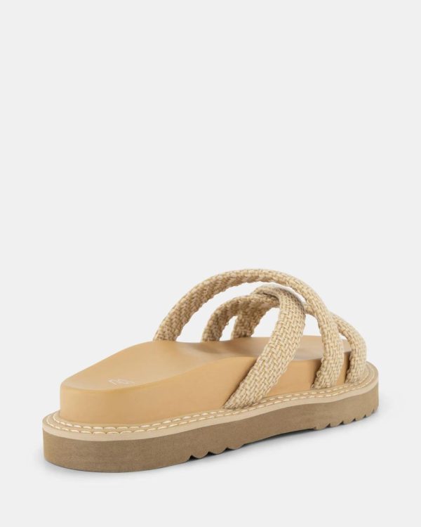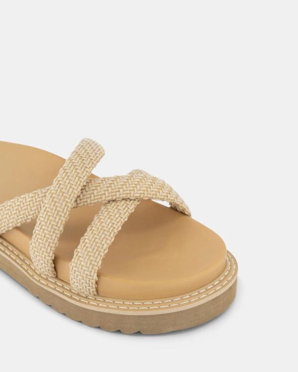 Introducing TALIRA, chunky slides designed for summer-time adventures. Designed with a cushioned footbed and a ridged, chunky sole alongside a round open toe and a flattering tubular strappy upper, these slip-ons can be styled with ease. Pair them with your favourite denim and watch them amplify the style.