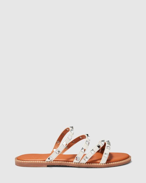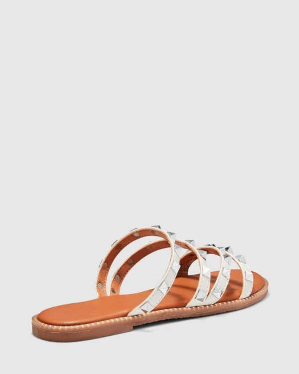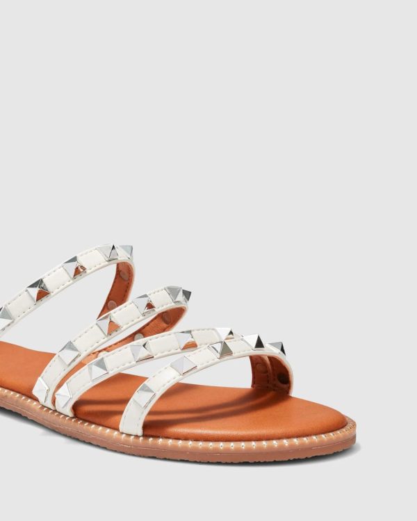 This slide features a thong design, with straps that cross the front of the foot. The straps feature a stud detailing to create a contemporary style. The Tenna is crafted with a soft leather-look material, available in versatile colours pearl, clear, nude or white. Style your Tenna slides with a midi skirt and a cropped denim jacket for a weekend BBQ. The Tenna is constructed with a synthetic inner, lining and outsole.