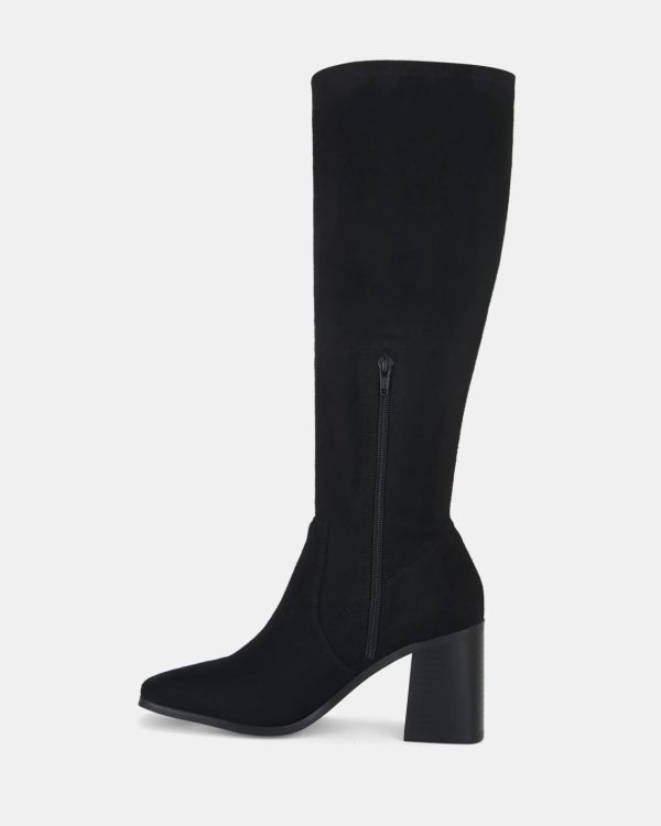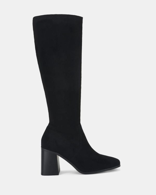 The OZZY long heeled boots are here to add that leather look flair to your shoedrobe. These sexy boots come in black leather look and black micro suede options. With a slightly flared block heels and classy square closed toe, the OZZY are perfect for weekend night outs of dinner or night clubbing scenes. Zip them up with a mini denim skirt and blouse or a cute A-line mini dress.