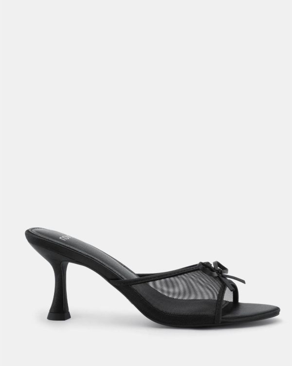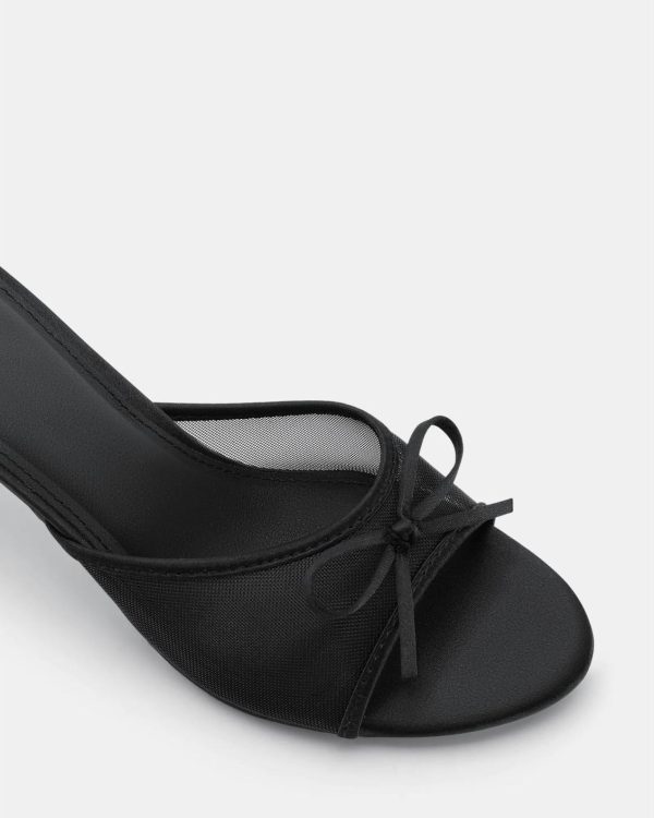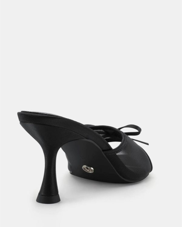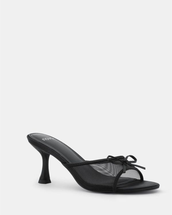 For a bolder shoe option suitable for everyday wear, FLORIAN mules are the perfect pair. The sleek and modern aesthetic and the mesh upper adorned with bow detailing add a striking visual impact. Set on flared 7cm high heels, these shoes offer all-day comfort despite their height.