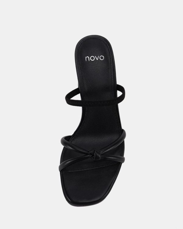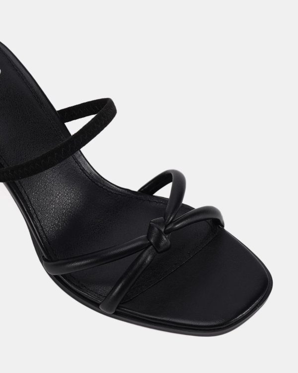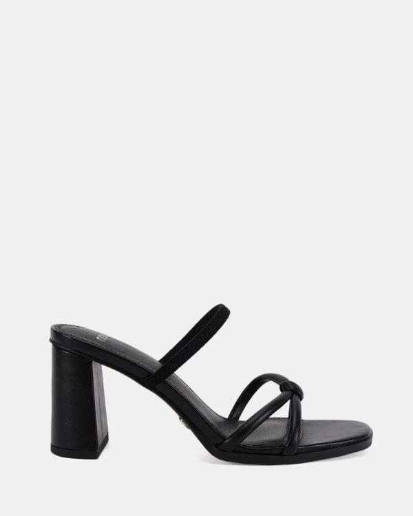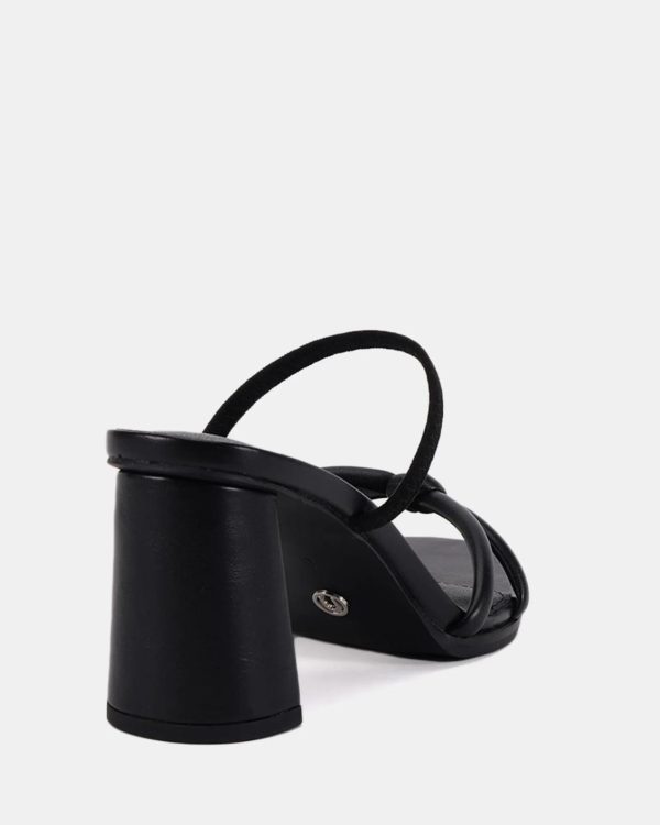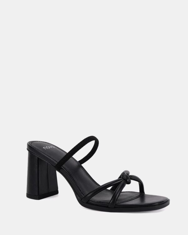 Elevate your style with the timeless allure of LEDORA block heels. Featuring tubular straps with knotted detail and towering block heels, these chic mules offer a stylish boost in height. The convenient, slip-on design guarantees effortless wear. Step into these bold mules to make a statement.