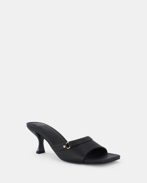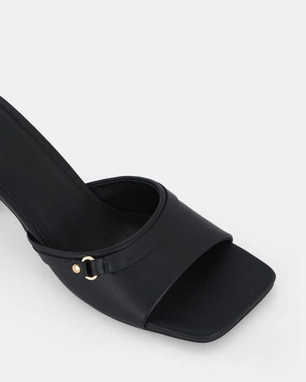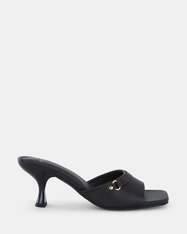 Slip-into URTHA peeptoe heels, a feminine silhouette faceted with slim straps on the vamp for an effortlessly chic finish. Crafted in pure leather-look upper, this minimalist slip-on mule is guaranteed to offer an understated yet sophisticated accent to every ensemble. For easy elegance, style them with a mid-length skirt.