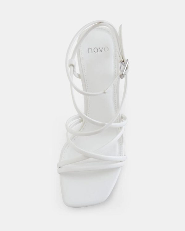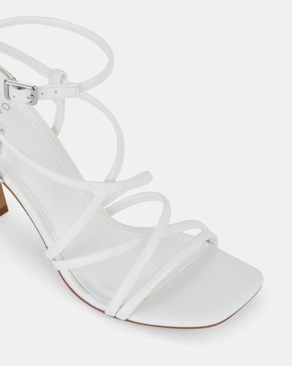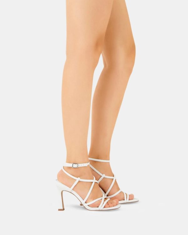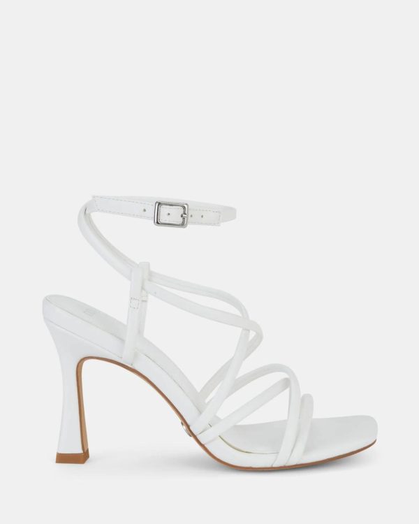 The stunning LOLLA comes in a leather look finish and is a street fashion necessity. Step boldly in LOLLA heeled sandals featuring an asymmetric strappy design and slim crossover straps that add visual interest. Moulded to the iconic square-toe silhouette and set atop sculpted heels, these delicate straps provide a leg-lengthening workwear silhouette.