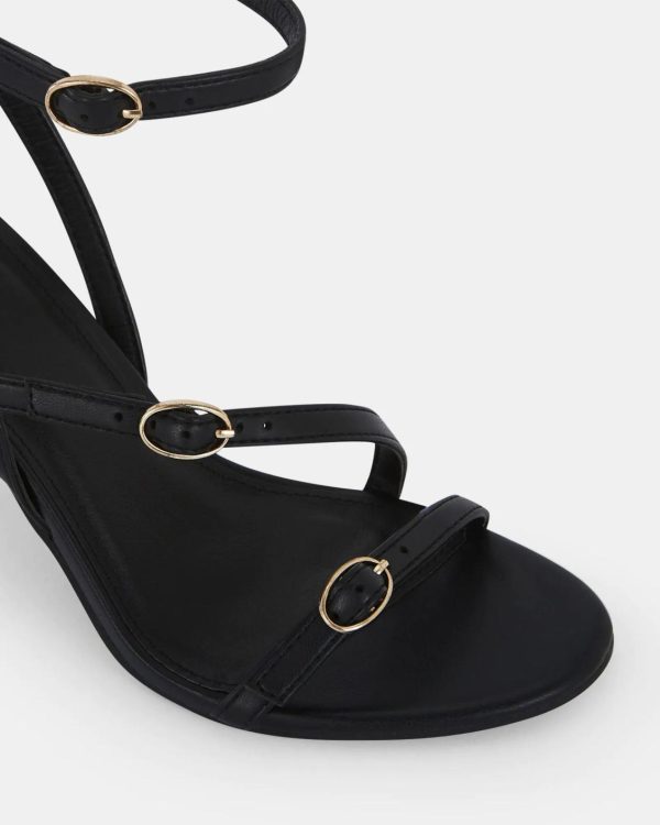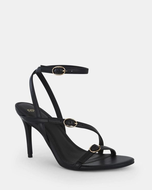 Put the finishing touch on your wedding/party look with NOLAN. With a leather-look upper and multiple buckled straps, they will complement any look with ease. With their pointed stilettos and round open-toe, these beauties will add a chic and feminine element to your ensemble. Plus points for the buckle fastening around the ankle; it ensures a comfortable and secure fit.
