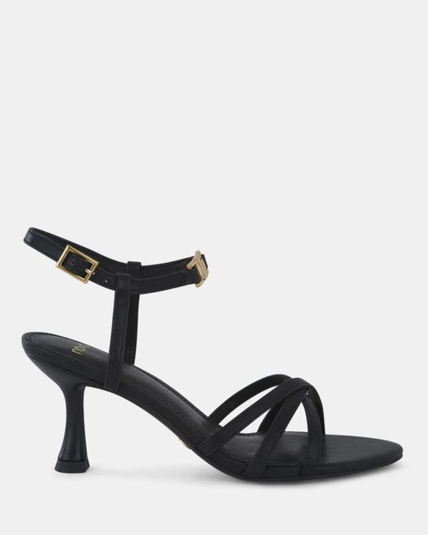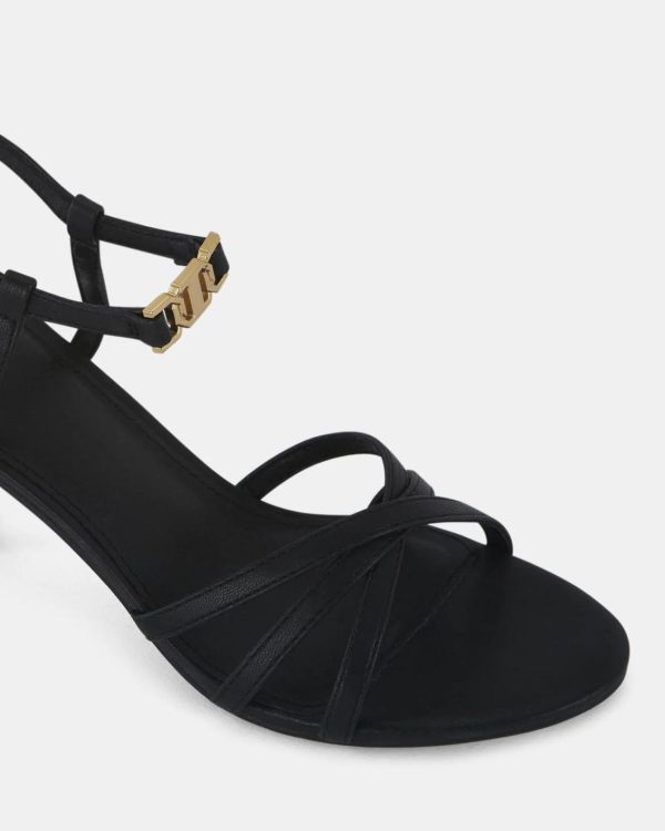 Styled with sarong skirts, UNDOMIEL sandals are crafted in leather-look upper. They feature slim crossover straps at the toe and around the ankle and rest on leg-lengthening flared heels. With a simple yet sophisticated silhouette, they’ll quickly become your go-to evening shoes.