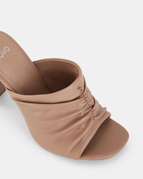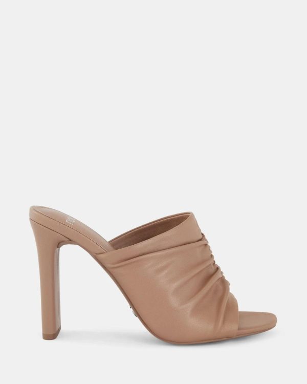 Look polished and put-together in an instant with FREEZA heeled mules. Featuring a gathered vamp strap and towering sleek rectangular block heels, they will complement a wide range of clothing. This elegant pair can still be worn dressed up for more formal occasions.